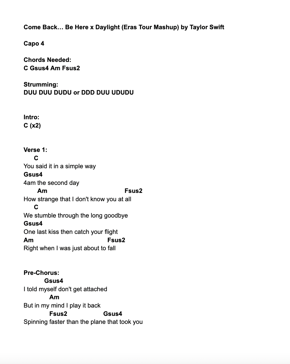 Come Back… Be Here x Daylight (Eras Tour Mashup) by Taylor Swift taylor swiftred Feb 19 Written By Nena Shelby to download or print this tab, click here. come back be heredaylightloverred taylor's versioneras toursurprise song Nena Shelby